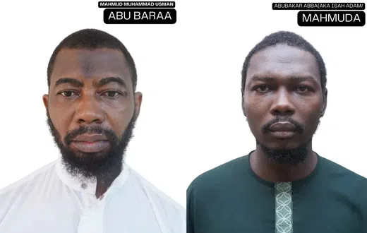The suspects are Mahmud Usman, also known as Abu Bara’a Abbas/Mukhtar, who is described as the Emir of Ansaru, and his deputy, Mahmud Al-Nigeri, also known as Malam Mamuda.