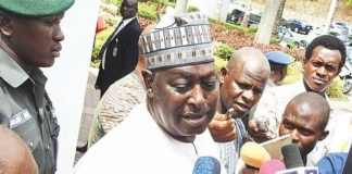 The group during the press conference in Yola on Saturday.
